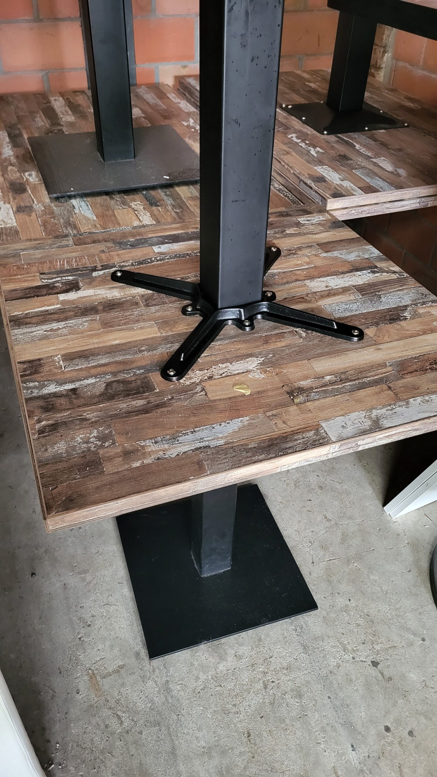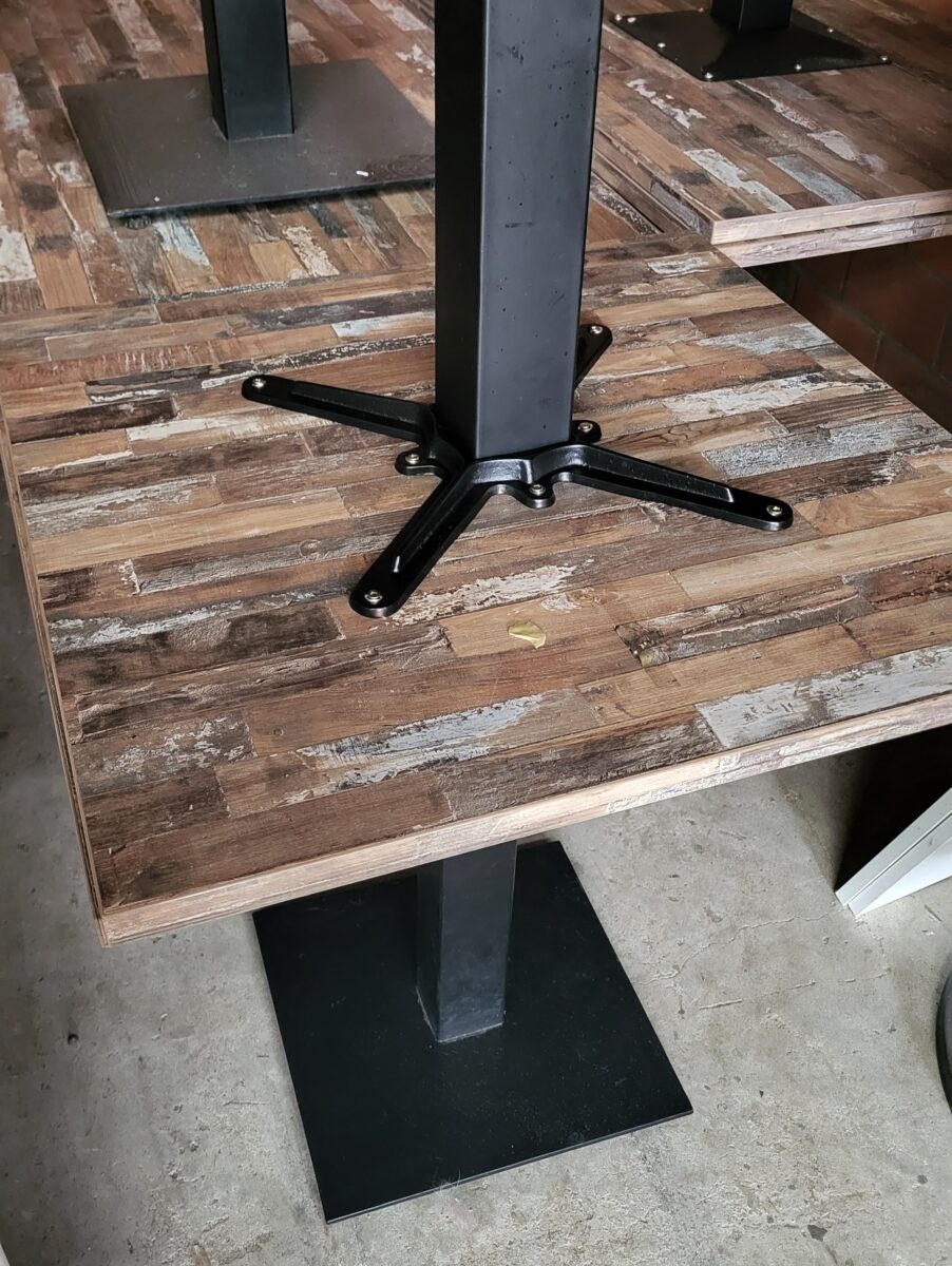 3×70/70 & 4x 110/70 houten gestreept blad metalen onderstel 125€per stuk